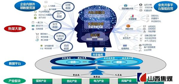 “數字焦煤”藍圖設計方案以服務安全生產和產品銷售兩個一線為核心,以貫穿財務管理為主線,通過企業中臺,融通人財物、產供銷、投資、法務、綜合辦公9大業務平臺核心數據,并整合政府、互聯網等外部數據資源,通過內外部數據的統一治理,提升數據價值,形成山西焦煤多層級、全要素、云應用、無邊界協同的新型ERP集團級數字化管控系統。系統平臺采用云計算、大數據、物聯網、人工智能、數字孿生等先進技術,開展大數據分析應用,構建“1+9”架構的集團級企業大腦,可直觀呈現生產經營全過程,為企業風險預測、形勢研判和價值創造提供支持,進一步建立數據驅動決策機制,全域賦能企業各產業板塊運營和數字化轉型發展。